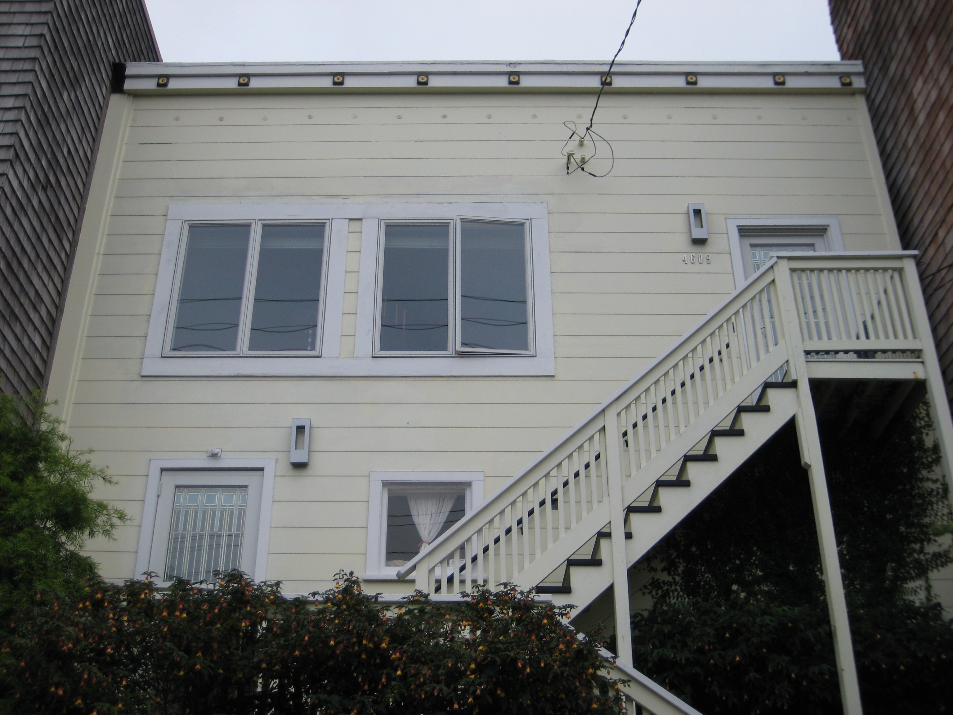Oh, right, there was also the flashing (small yellow strip just above top board in pic above) we needed to add just in front of the water-proofing material and behind the new boards. I believe this was to prevent water from entering behind the windows. It was nailed on and then sealed with a silicone sealant.