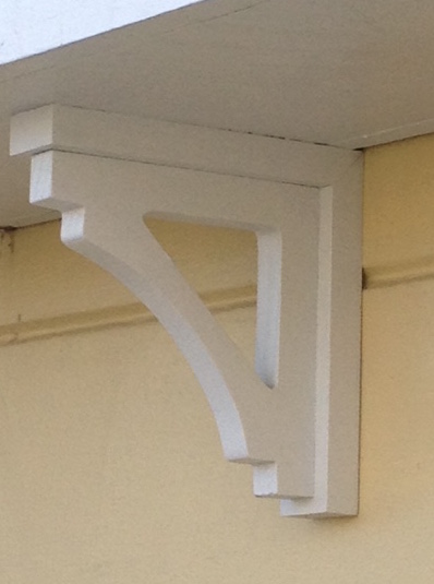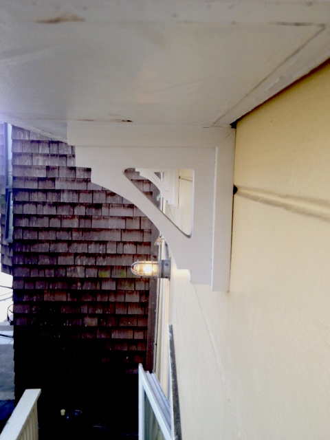 I was reminded from an employee at Lowes that I needed “galvanized” screws otherwise, the screws would rust and ugly brown drips would run down our pretty little paint job. I also got the wood brackets at Lowes where I found the pair for about $8. Basically, the brackets are simply for aesthetics (I hadn’t known this at first) as they really don’t support the weight of the window boxes. That’s another piece of the project.