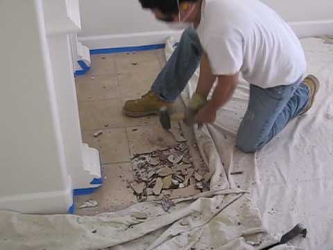 Ok, back to the tile project. Everything in the house and ready to go. First, I needed to remove the existing tile. It was a messy, dusty, and loud process….