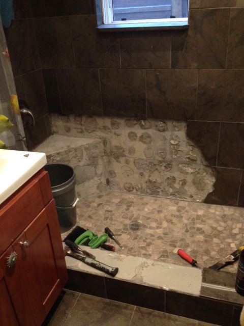 I have a love/hate relationship with doing tile work. I love the idea, and the vision of how it will (or, should) end up looking. I also like much of the actual work itself but at some point I get REEEAALLY sick of doing it. It’s usually when I’m partially through the job and there’s just no turning back….