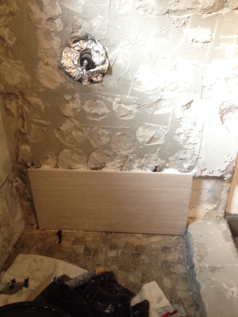 The areas then needed to be sanded down to create a relatively even surface for the new tiles. Again, messy and dusty.