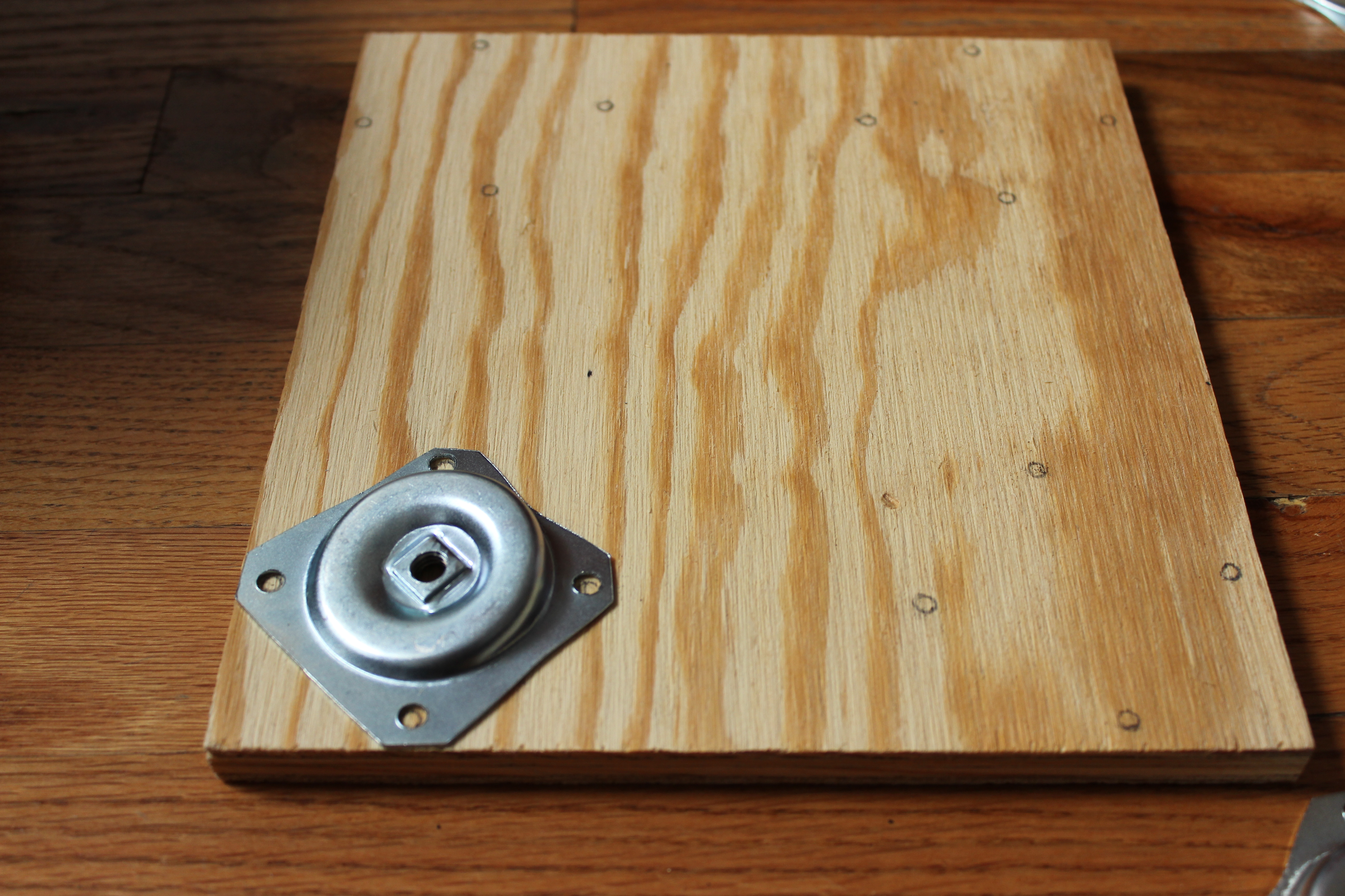 Marked the holes for the leg bases on the back of the wood and drilled small starter holes…