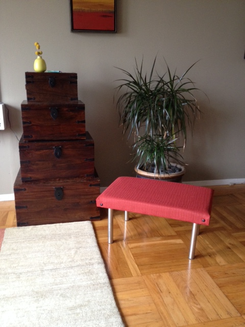 I knew I’d be less bothered by the shiny chrome legs since this new bench was going to be relatively small and in a less visible part of the house.